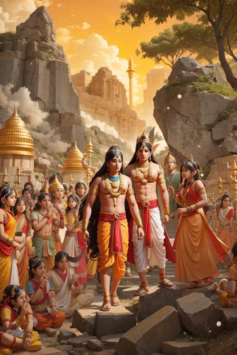 The epic portrays the power of unity and teamwork through the alliance formed between Rama and various allies, including the Vanara (monkey) army led by Hanuman. It emphasizes the strength that comes from collective effort and collaboration.
